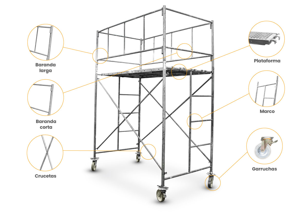 Es la estructura principal que sostiene y soporta el andamio. Esta estructura está compuesta por varios componentes clave que trabajan juntos para proporcionar una plataforma segura para los trabajadores.